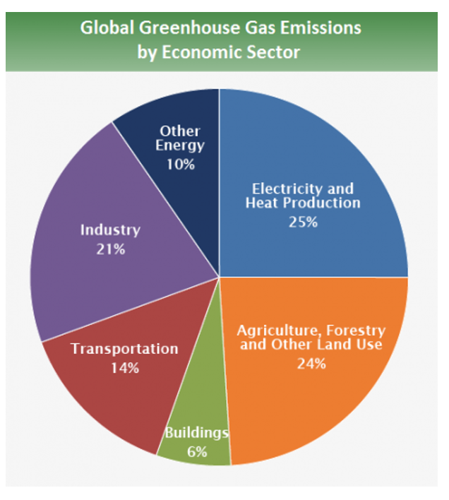 CO2 emissions are 76% of the total greenhouse gas emissions. Ironically, agriculture and forestry are responsible for a majority of the greenhouse gas emissions.